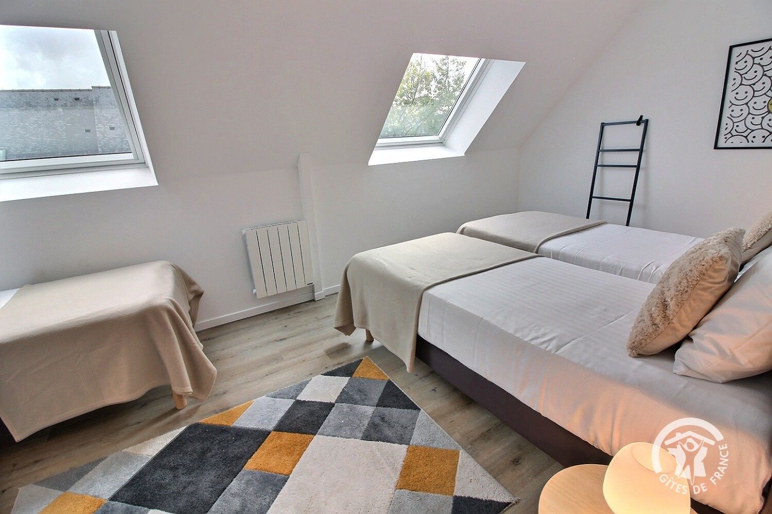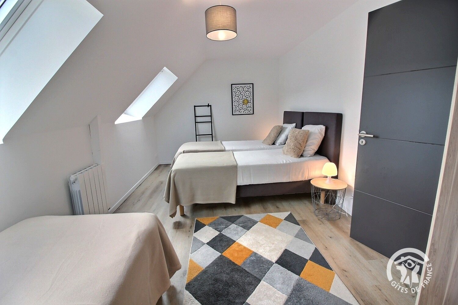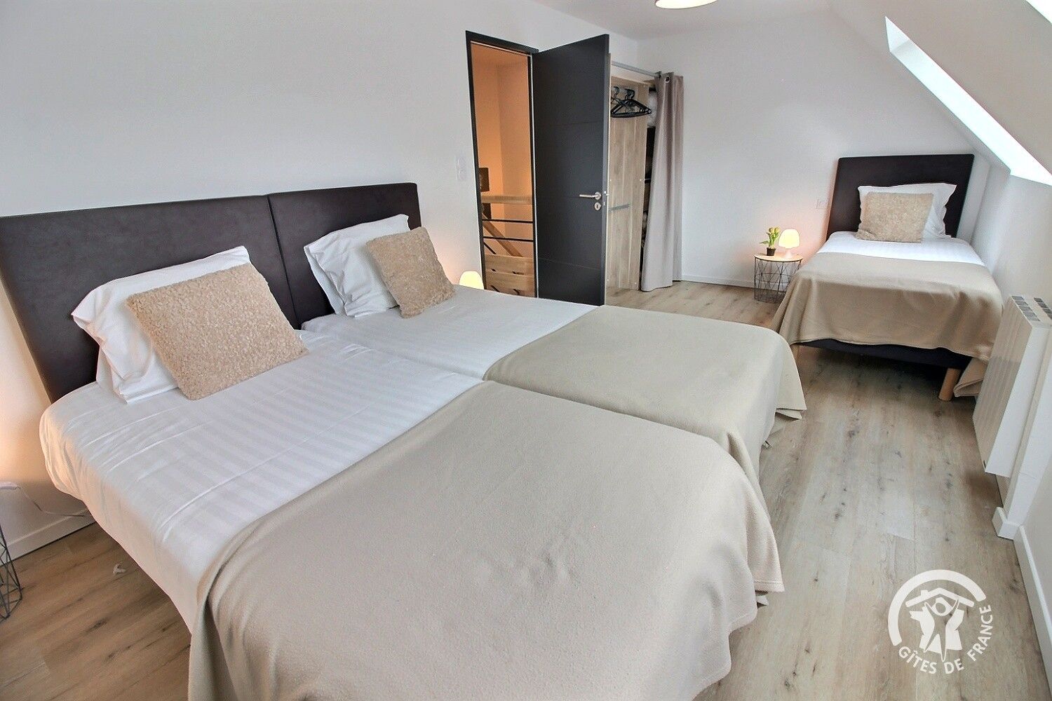 - Une chambres avec 3 lits simples