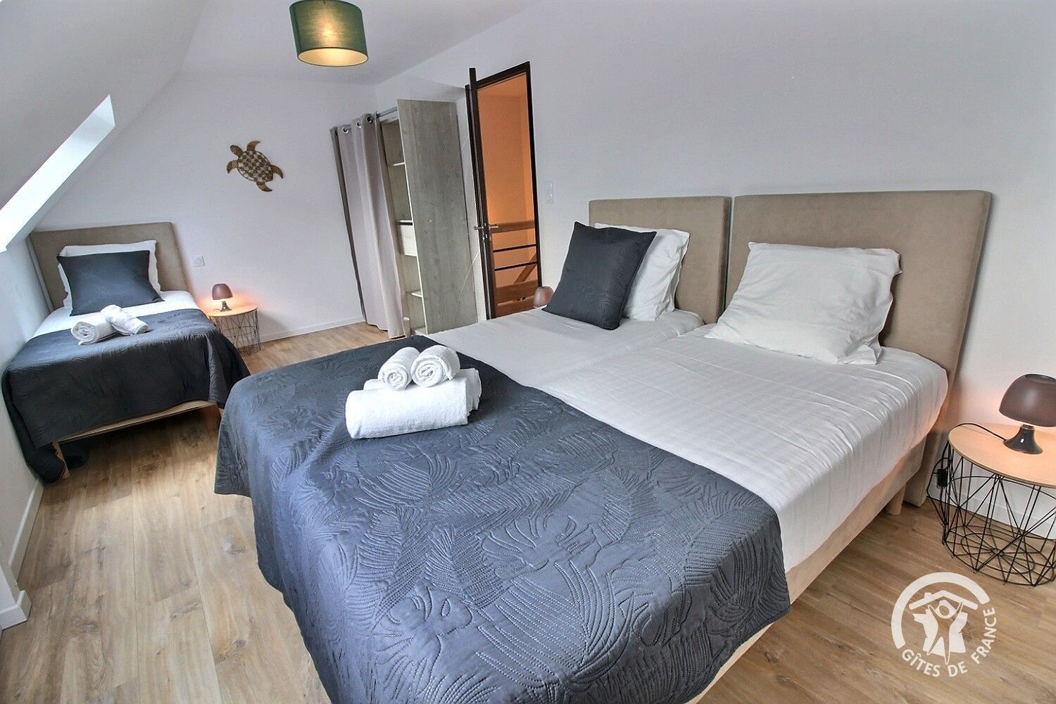 Nous vous proposons à la location, sur la commune d’Erquy, cette charmante maison avec piscine partagée, d’une superficie de 76 m² et pouvant accueillir jusqu’à 5 voyageurs. Parking privé est partagé pour les 4 logements, non couvert, clos et fermé par un portail électrique.