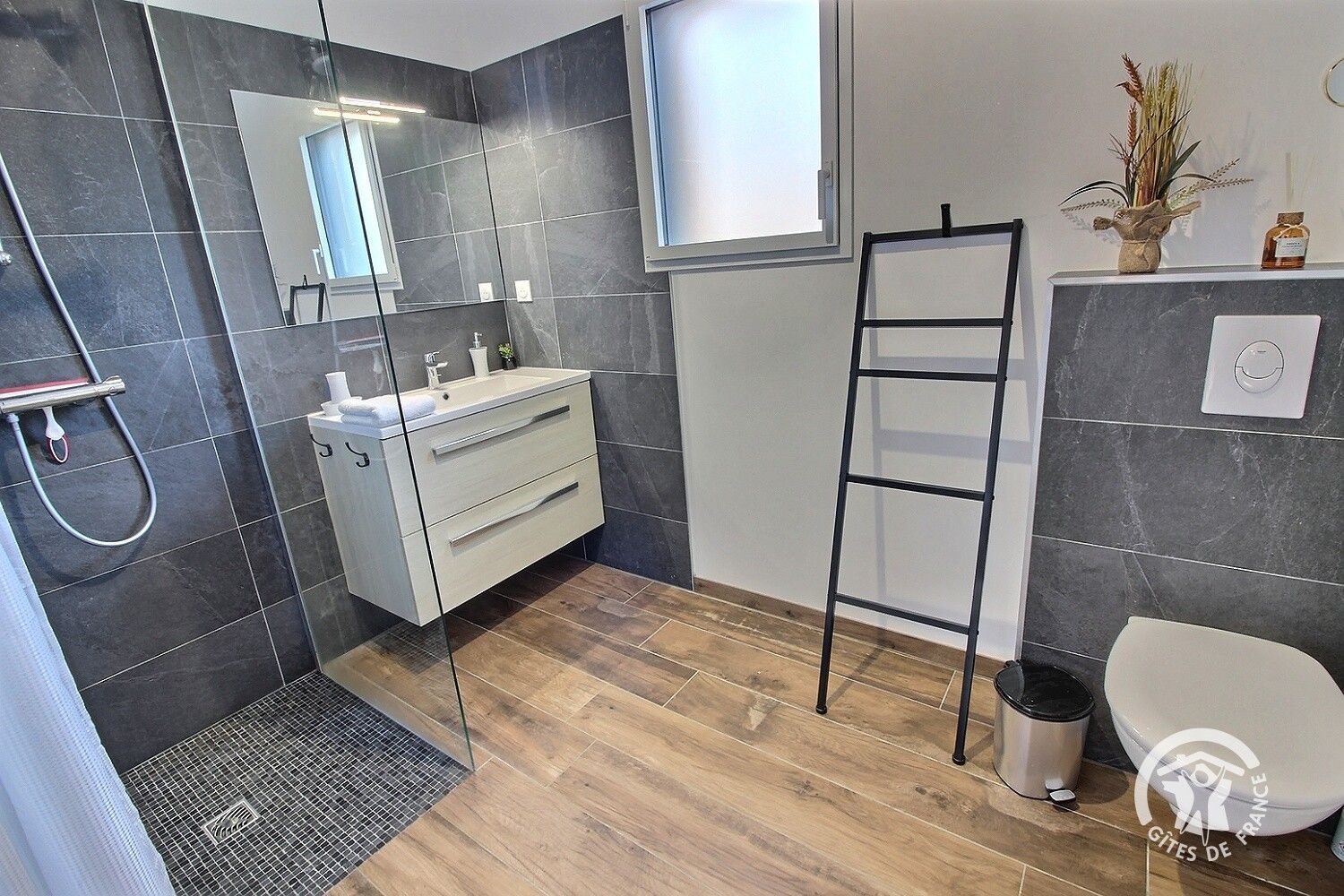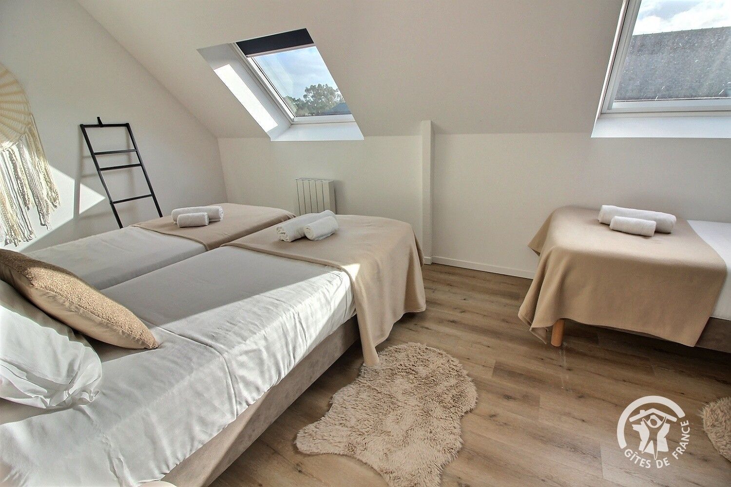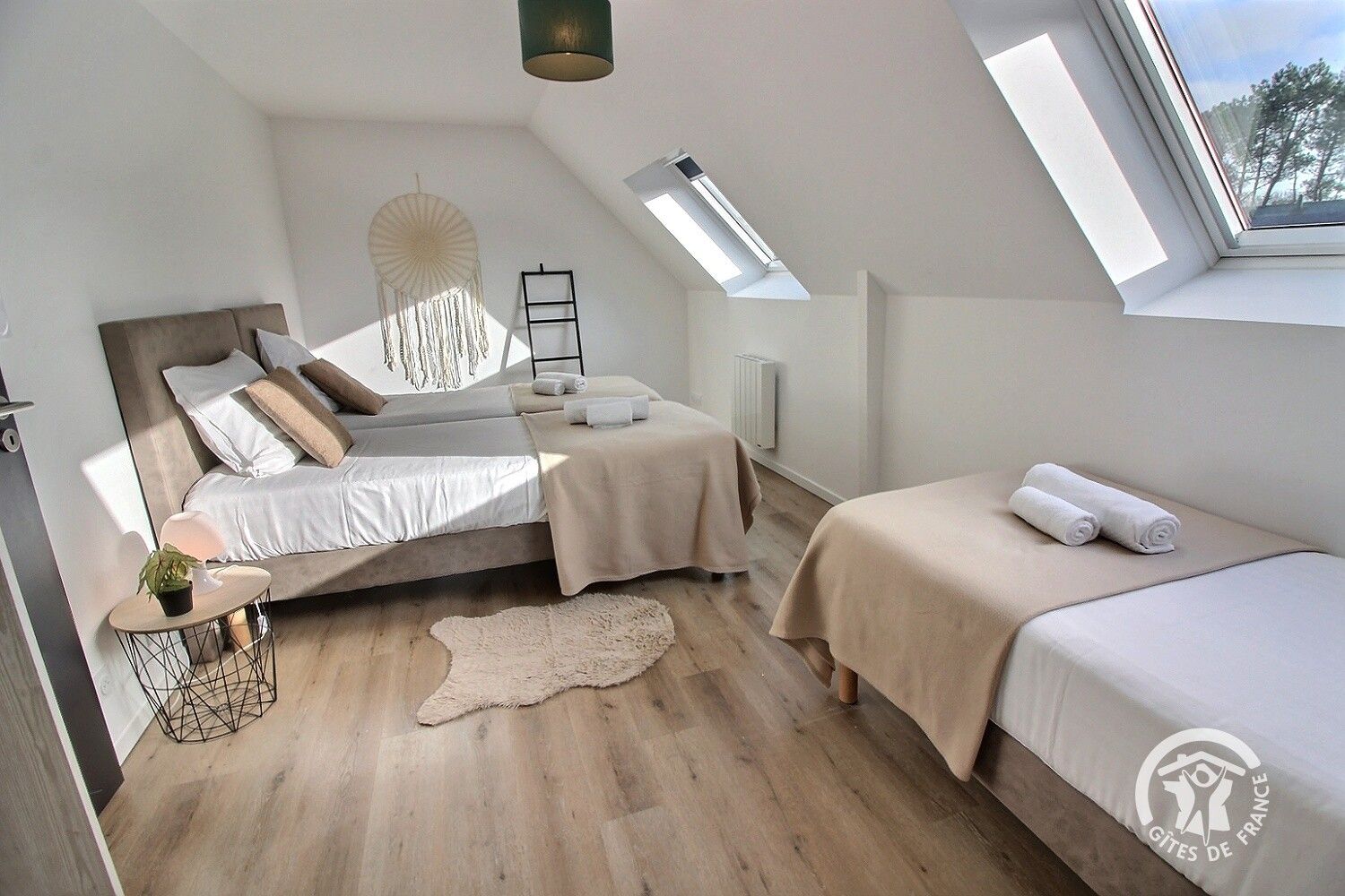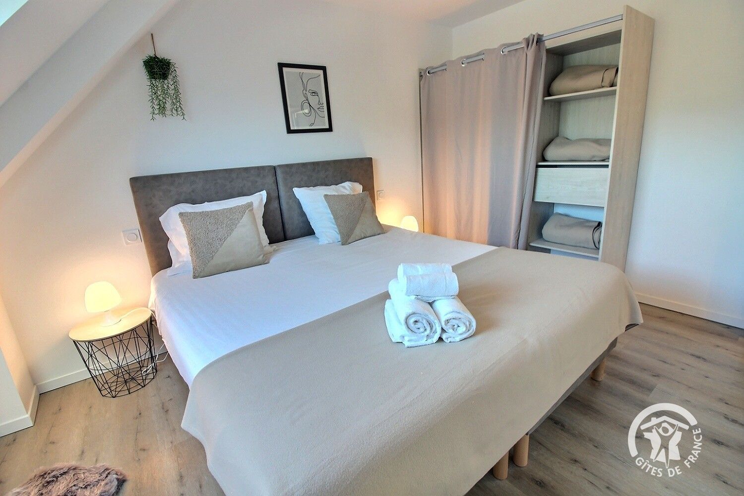 Nous vous proposons à la location, sur la commune d’Erquy, cette charmante maison avec piscine partagée, d’une superficie de 76 m² et pouvant accueillir jusqu’à 5 voyageurs. Parking privé est partagé pour les 4 logements, non couvert, clos et fermé par un portail électrique.