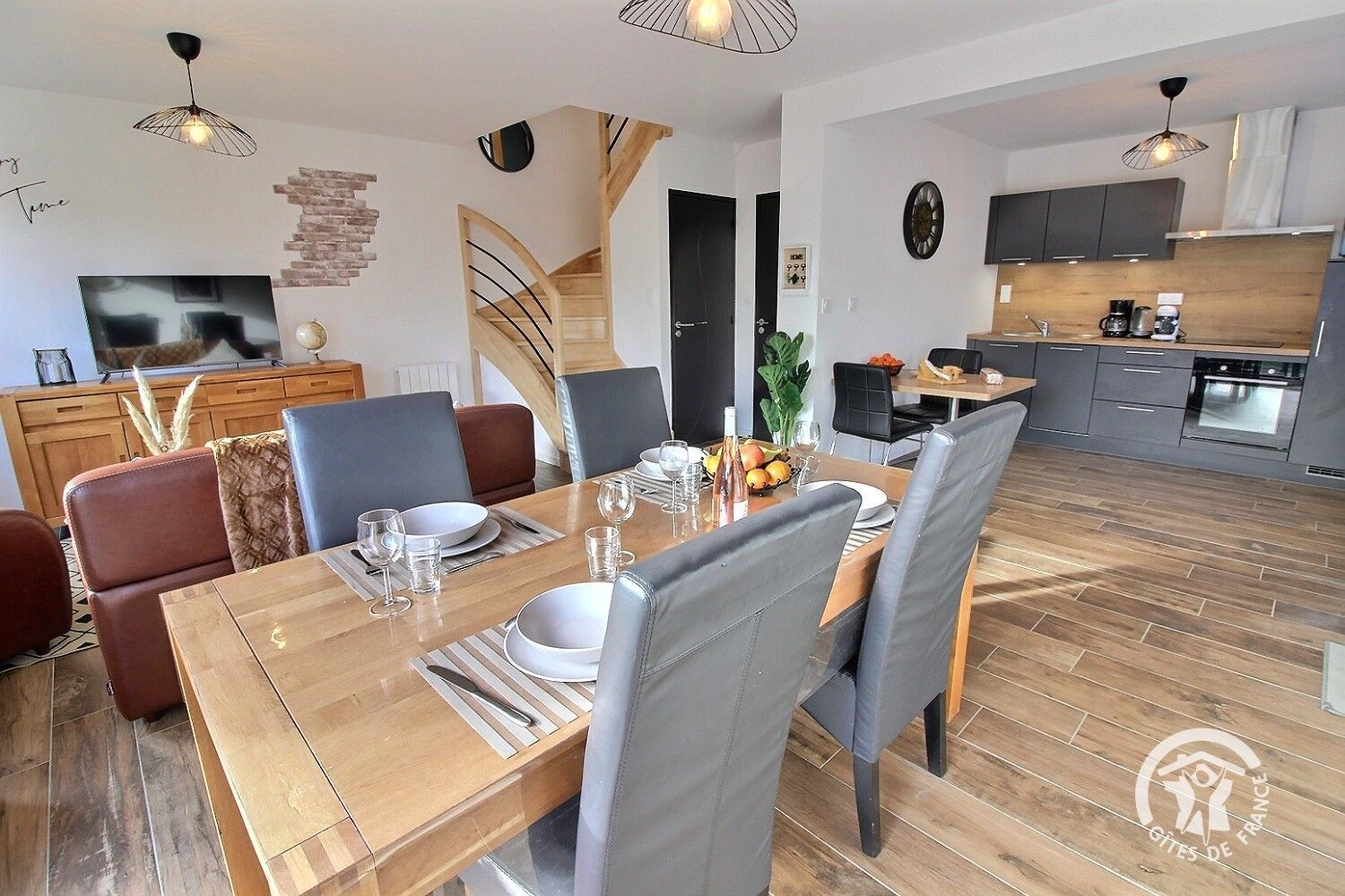 - Une cuisine équipée ouverte avec notamment : bouilloire électrique, four, four à micro-ondes, grille-pain, lave-vaisselle, plaques de cuisson